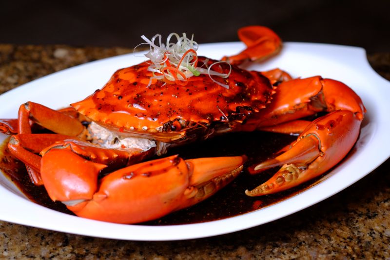 砂拉越黑胡椒螃蟹,是采用砂拉越胡椒调制,再与螃蟹一起炒,螃蟹尚未端上桌,黑胡椒的香气马上扑鼻而来,厚实的蟹肉有嚼劲。