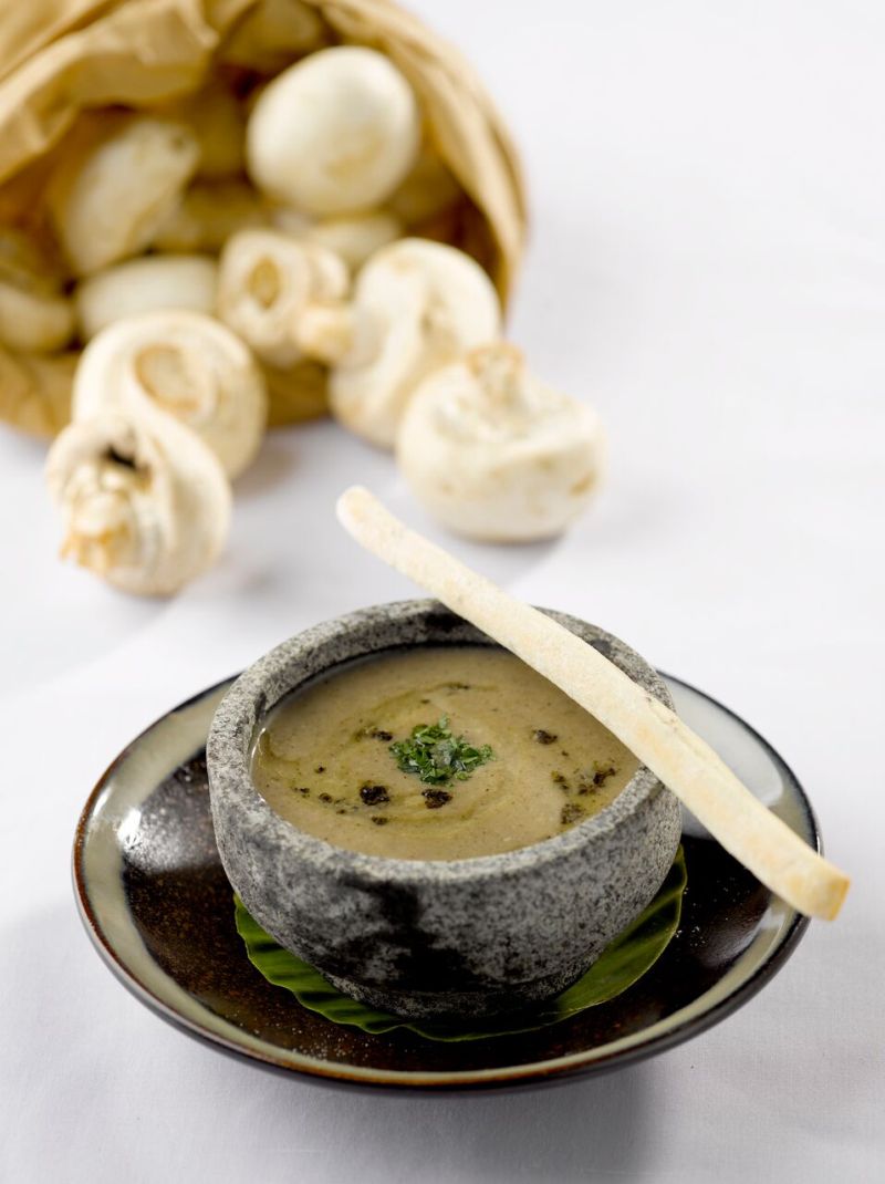松露蘑菇汤($10)是将汤盛在热腾腾的石锅上,未端上桌就能闻到松露香,蘑菇汤浓稠馥郁,非常开胃。