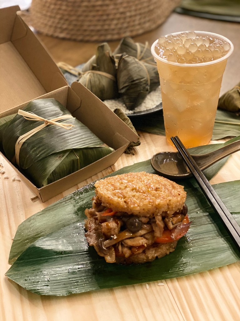 Route 65主厨Anthony的母亲每逢端午节必裹肉粽送亲友,这激发了他的灵感,将传统肉粽摇身变为两款全新肉粽汉堡,造型也从三角形变成汉堡形状。两款肉粽汉堡分别是肉粽汉堡(每个$9.90),以5种香料配搭五花肉、洋葱、辣椒、姬菇(shimeji mushrooms)和番茄入馅,夹在糯米汉堡。