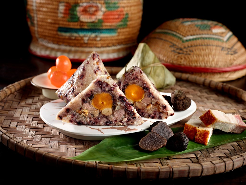 还有乐天集团(Paradise Group)的人气粽黑松露烧肉五谷粽(每个$13.90),混合了黑糯米、五谷米和糯米,再以烧肉、五花肉、猪肉、栗子、咸蛋黄、虾米、黑松露等入馅,还添加松露油与麻油提香,让你吃时口腔有着松露香。