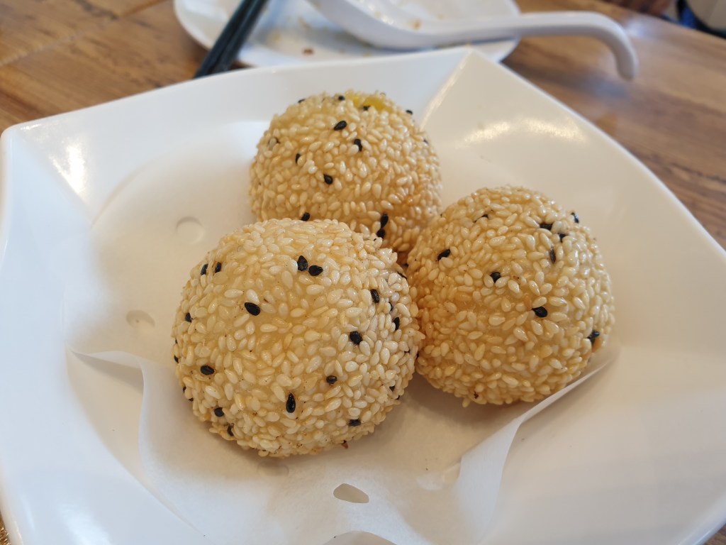 流沙香麻煎堆($4.80),轻轻剥开以咸蛋黄制成的金黄流沙缓缓流出,一口咬下,咸甜的流沙溢满口腔,而撒上芝麻的外皮Q弹。温馨提醒,品尝时要留意黄金流沙烫口。