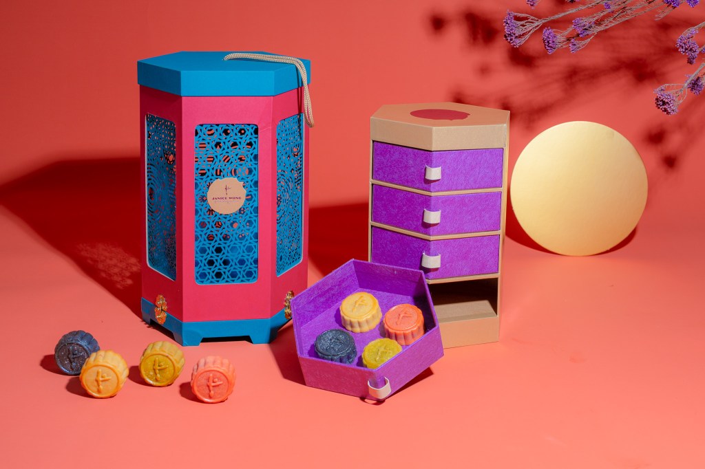 新口味的冰皮月饼有铁观音荔枝(Tie Guan Yin Lychee)、香桃柚子(Yuzu Peach)、斑兰巧克力椰奶(Pandan Chocolate with Coconut Cream)和烟熏玉蜀黍(Smoked Corn)。特色是每个月饼直径只有6厘米。