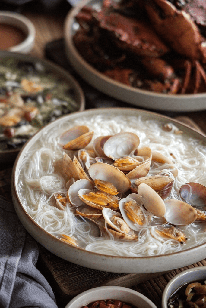 另一让我惊喜的是粗米粉螃蟹,重点是汤头。用啦啦(也就是蛤蜊)熬出的汤汁,加入米粉与螃蟹焖,让米粉吸收汤汁和螃蟹的精华,米粉嚼在口中爽口鲜甜Q弹;啦啦的汤头更是甘甜味美,叫我不禁多喝了几口呢!