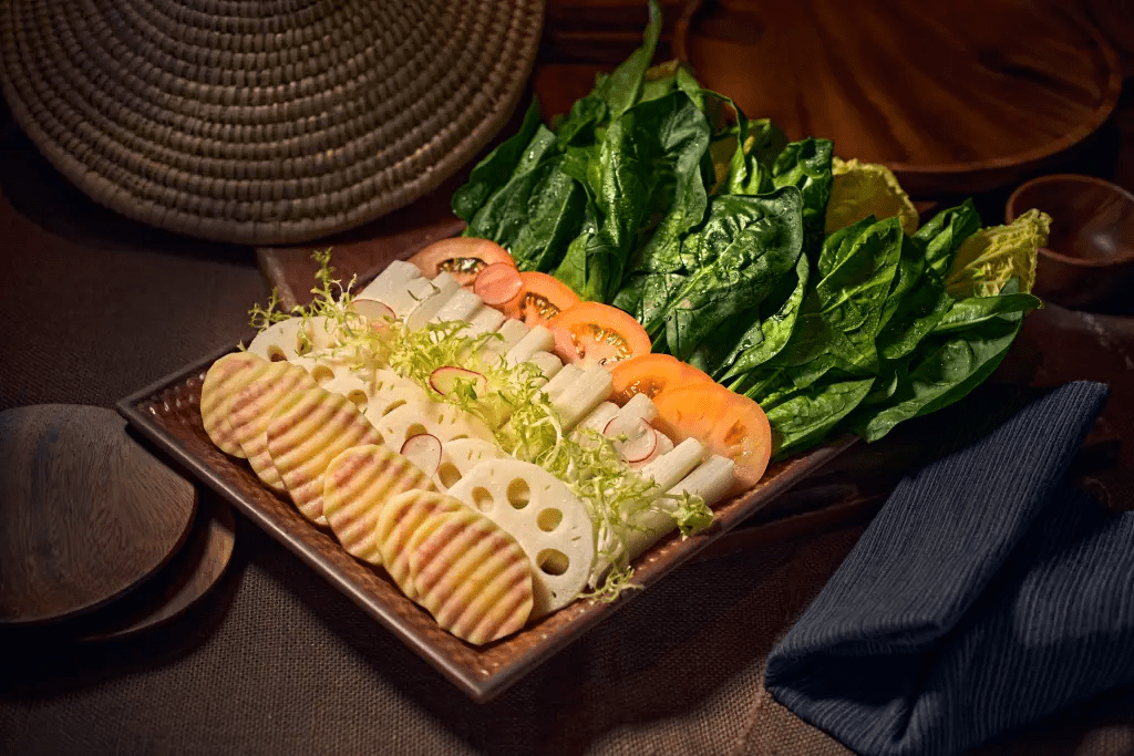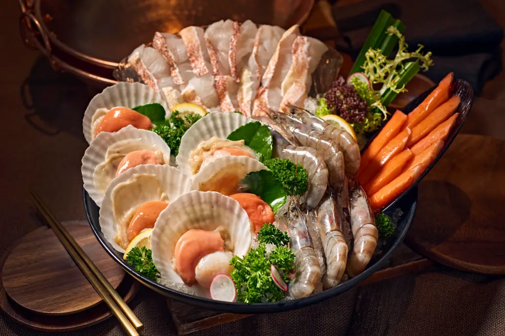 套餐也备有3款火锅涮料,包括当归鱼子虾滑、野生菌综合盘与龙趸鱼片。