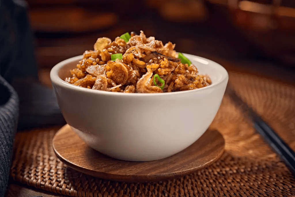 葱油拌饭($6),虾米、蒜头与香菇爆香煸炒,再和泰国香米一起蒸熟,米饭粒粒分明,弹牙,带有葱油的香气。