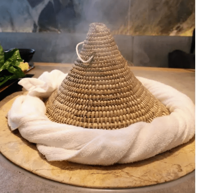 蒸汽石锅能使食材均匀受热,也能保温;草帽锅盖能让蒸汽保留在160度的受控温度,以便起着“锁味”的作用。