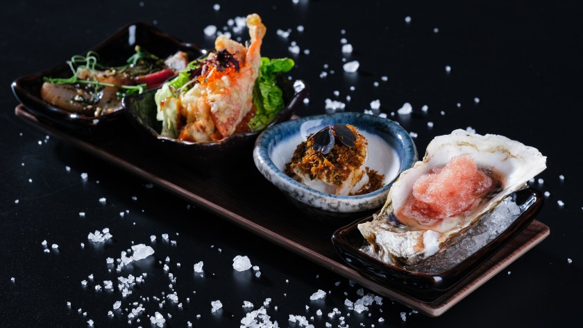 高档海鲜烧烤,共有12道,就像西餐,前菜、主菜和甜品。前菜是生蚝鰤鱼白虾软壳蟹生蚝肥硕饱满,配搭日式Mignonette调酱,酱汁在口腔呈现冰凉口感;腌制鰤鱼搭配黄豆和海藻,鰤鱼肉质软滑;水煮虾佐炒椰丝与混合香辛料,带有南洋风味,乳白色泽的水煮虾,吃起来布满鲜度和甜度;最后是缀以鱼卵的天妇罗软壳蟹配印尼甜豉酱,软壳蟹酥脆爽口。