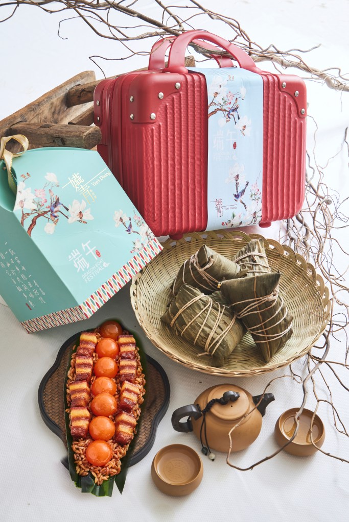 餐馆推出的粽子礼盒共有两款咸味粽和一款甜味粽,海味珍馐粽(Dried Seafood Steam Dumpling)包括鲍鱼、干贝、黄金虾等上乘海味,融合咸香的咸蛋黄、五花肉及香菇;云南野菌花胶粽(Yunnan Wild Mushroom & Fish Maw Dumpling),云南珍稀牛肝菌、刺芹蘑菇等野菌配搭花胶、鲍鱼及干贝,再佐以咸肉;三色枣甜粽(Trio Date Sweet Dumpling)以南枣、蜜枣及红枣3种枣类,搭配红豆沙,添加藜麦珍珠糯米包裹。