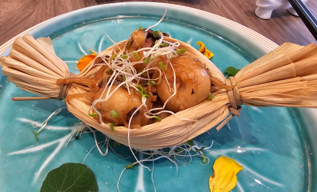 五悦亭:现代粤菜 新加坡安达仕酒店(Andaz Singapore)五悦亭(5 ON 25)餐馆的年菜,提供6款不同的午餐和晚餐套餐,每人$98起。其中鸿运齐捞起,采用Ora King三文鱼,配搭炸芋头丝、蜜饯坚果和酸甜的梅子酱等;以药膳鸡汤为汤底的佛跳墙,配有鲍鱼、鱼肚、海参与瑶柱,浓郁鲜香;五粮液焰香砂煲饭,米饭弹牙,带有酒香。
